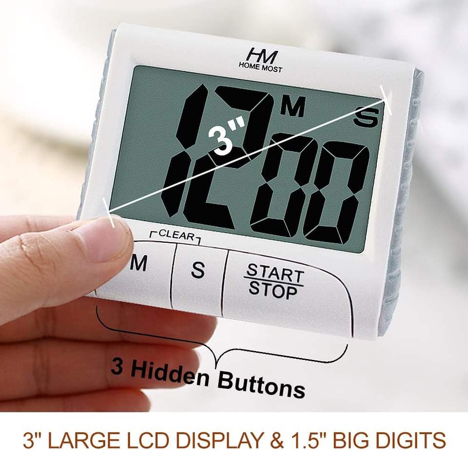Temporizador de Cocina con Pantalla LCD de 3 Pulgadas, Digital, con Cuenta Regresiva de 90 Minutos, Parte Trasera Magnética, Alarma Fuerte, con Cuerda (Plástico)