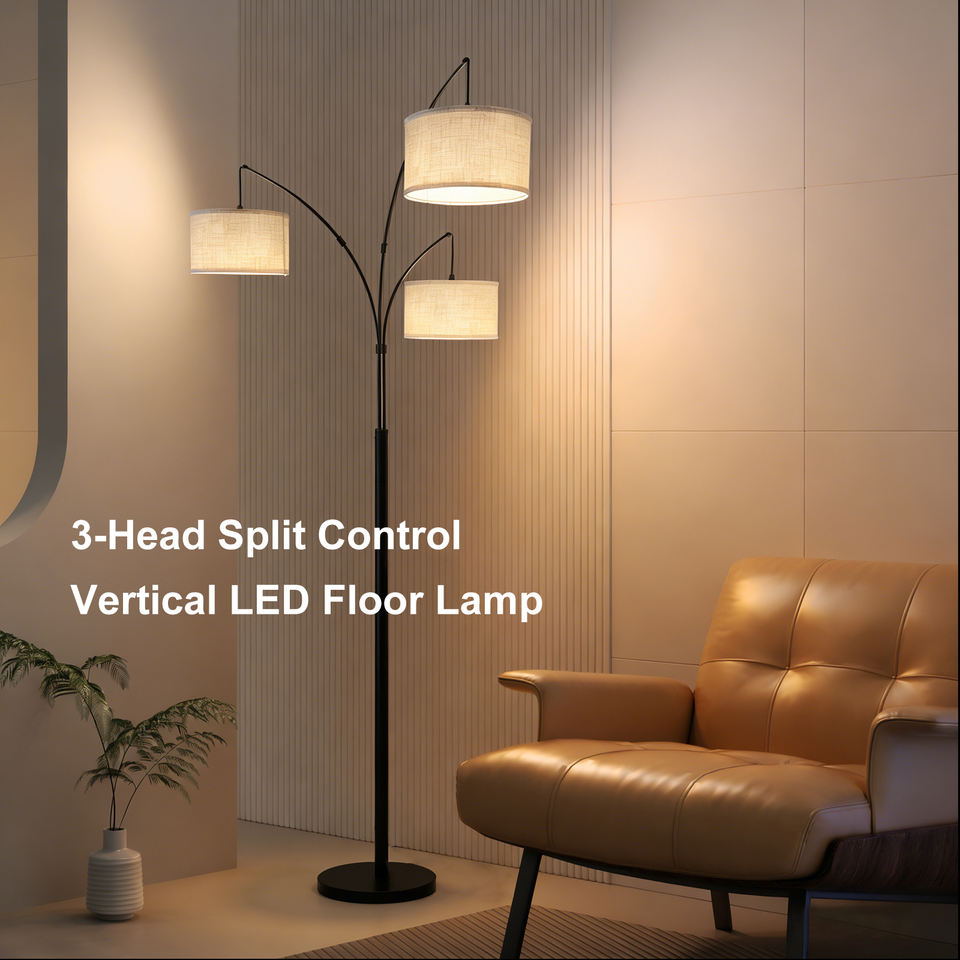 Lámpara de pie con 3 bombillas LED, regulable, con forma de árbol, poste giratorio de acero inoxidable, pantalla metálica, base pesada, estilo Mid-Century, alto CRI 90, 3000K