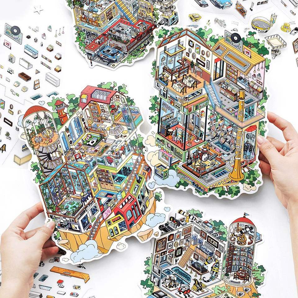 3 Pegatinas de Paisaje de Edición Grande por Paquete, Hoy 38 Mini Juguetes de Tienda de Campaña 3D Están Disponibles para la Venta
