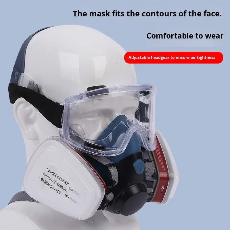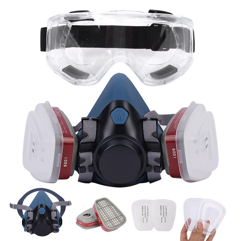 Máscaras de goma desechables de 3 capas, filtro de carbón activado, ventilador de 80 L/min, flujo de aire a prueba de polvo para pintura en aerosol, gases químicos