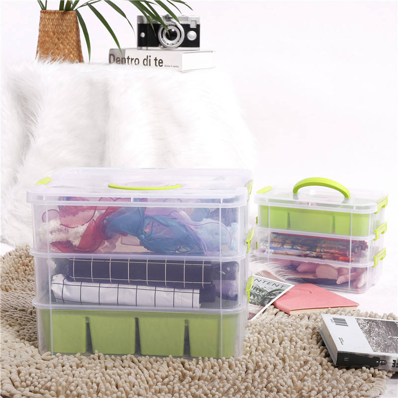 Caja de almacenamiento de plástico transparente de 3 capas, caja de juguetes con 9 compartimentos para supermercado, caja de almacenamiento para niños