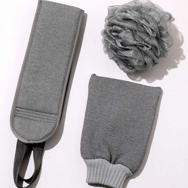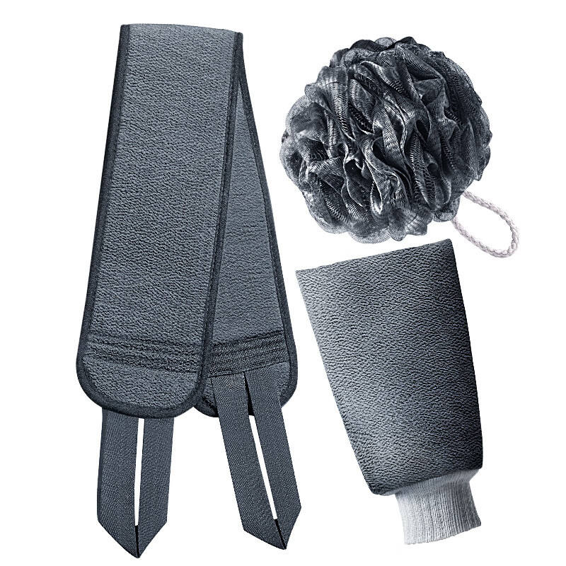 Paquete de 3 depurador corporal exfoliante gris, juego de depurador trasero, guante de baño, esponja de baño para ducha, esponja vegetal, cepillo de limpieza para el hogar, bola