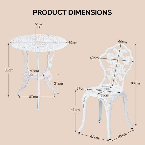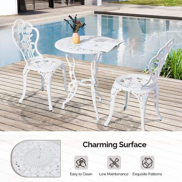 Juego de 3 Sillas de Bistró de Aluminio Fundido Resistentes a la Intemperie, Juego de Muebles de Patio para Exteriores, Juego de Bistró para Jardín