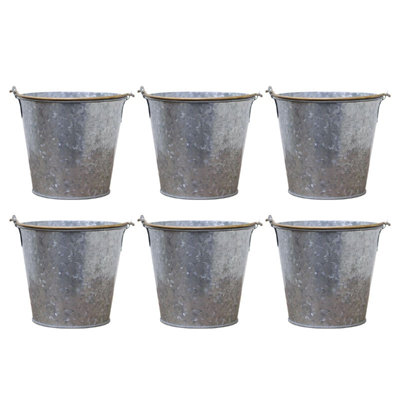 Paquete de 3 Mini Cubos Metálicos Galvanizados con Asas, Macetas Vintage de Hojalata y Hierro para Plantas, Decoración Rústica para Hogar y Jardín