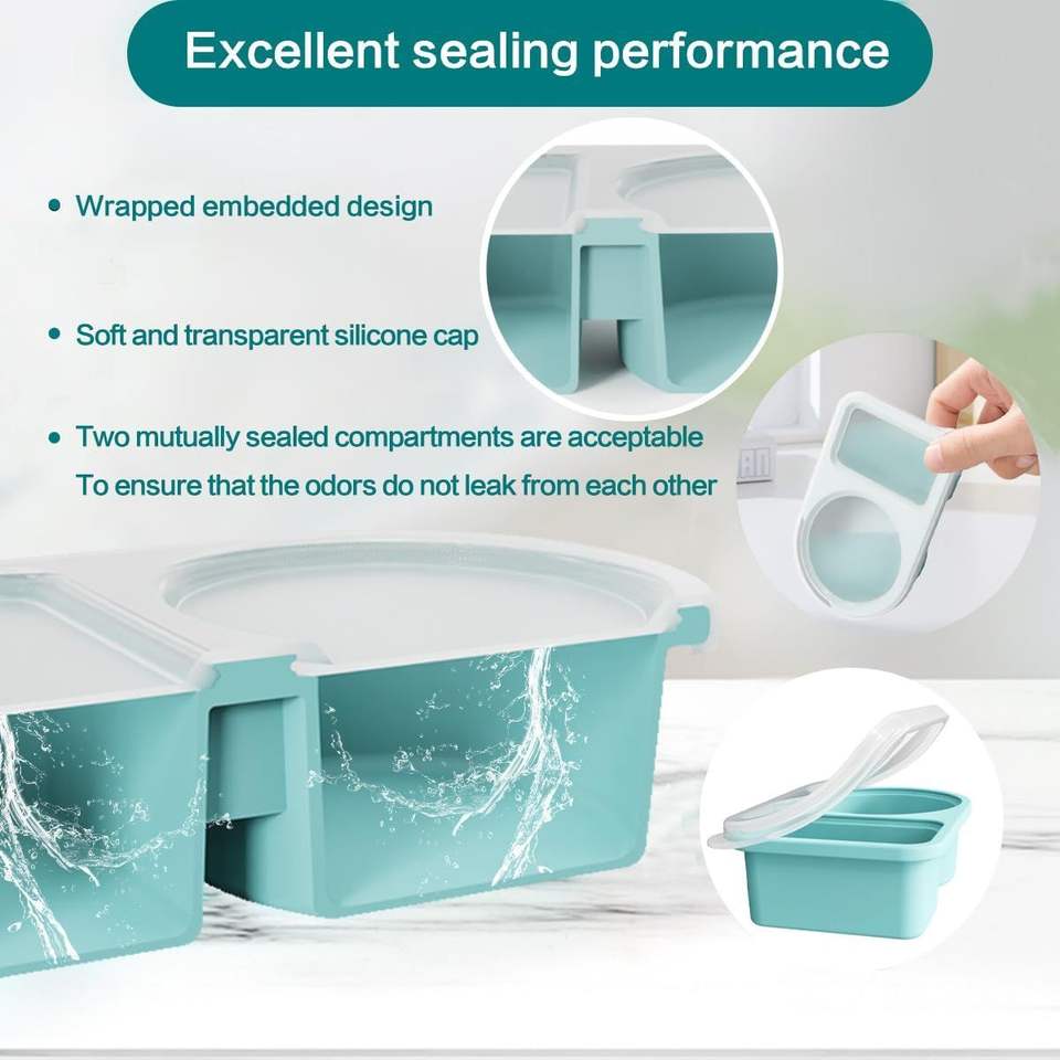 Paquete de 3 recipientes reutilizables de silicona para refrigerios, pequeños, a prueba de fugas, con 2 compartimentos, tapas semitransparentes, almacenamiento de condimentos SA