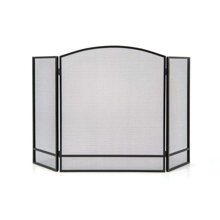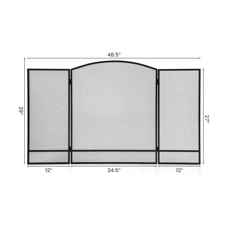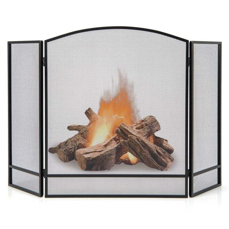 Mampara de Chimenea Plegable de 3 Paneles de Malla Metálica Forjada, Accesorio Esencial para Conjuntos de Chimenea