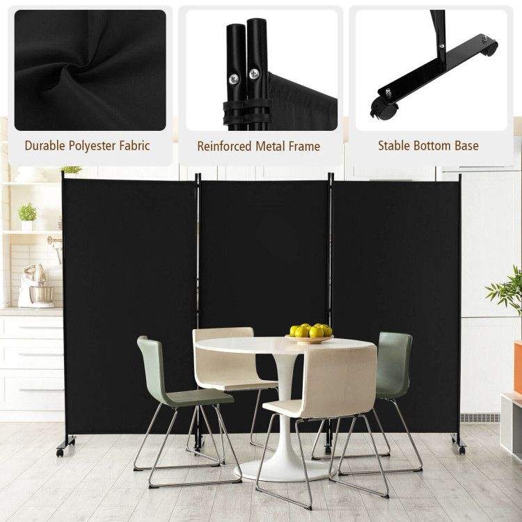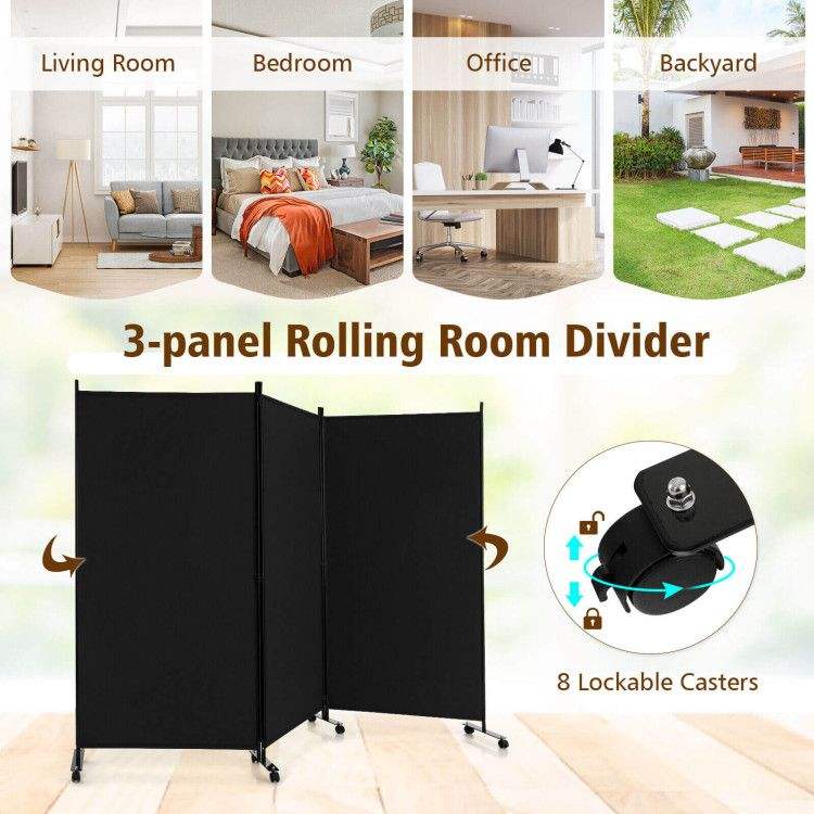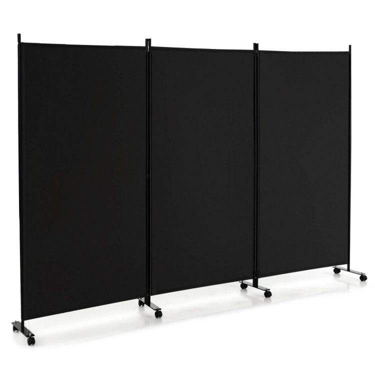 Biombo Plegable de 3 Paneles y Separador de Ambientes con Ruedas Bloqueables