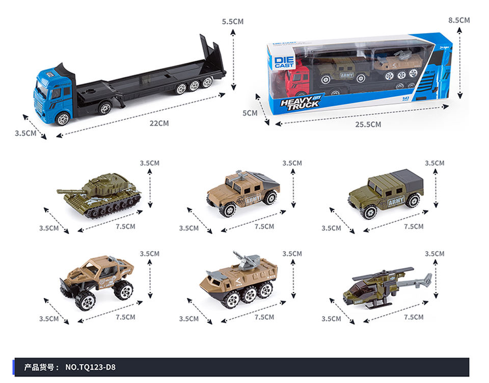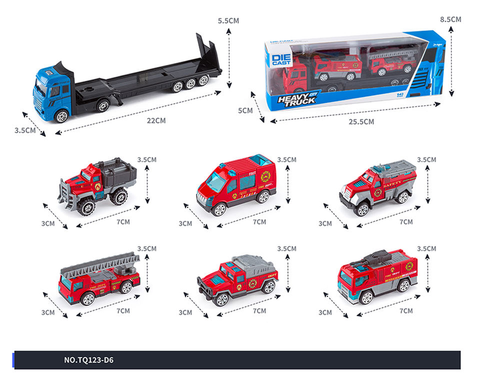 Contenedor de coche de carreras, conjunto de camión de semirremolque, emulación de metal fundido a presión, camión de bomberos, vehículos militares, camión contenedor