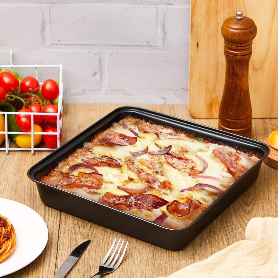 Sartenes de Pizza profundas rectangulares duras de 3 uds., plato antiadherente, utensilios de cocina para hornear presazonados, sartén para Pizza estilo Detroit