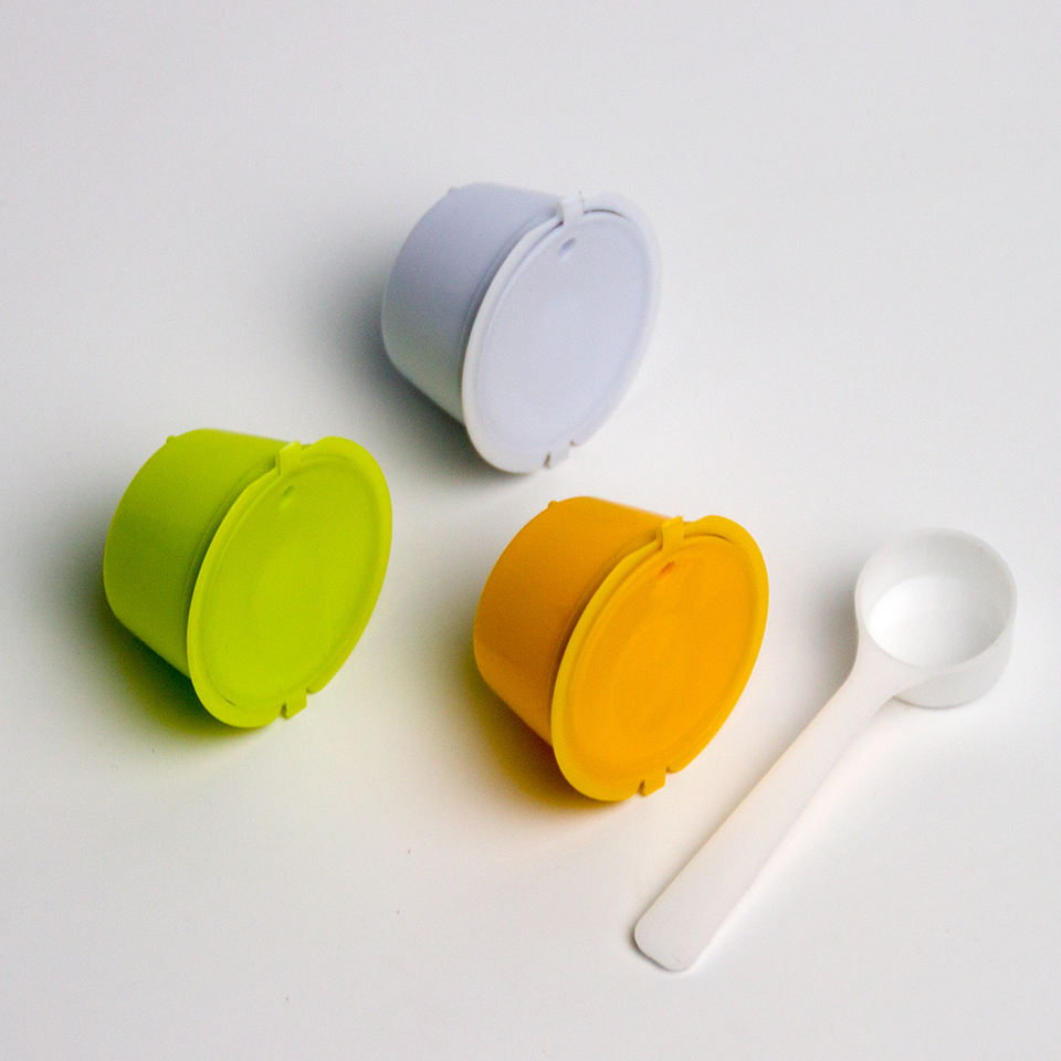 Cápsulas de café PP blancas reutilizables de 3 piezas para caja recargable certificada Dolce Gusto LFGB embalada