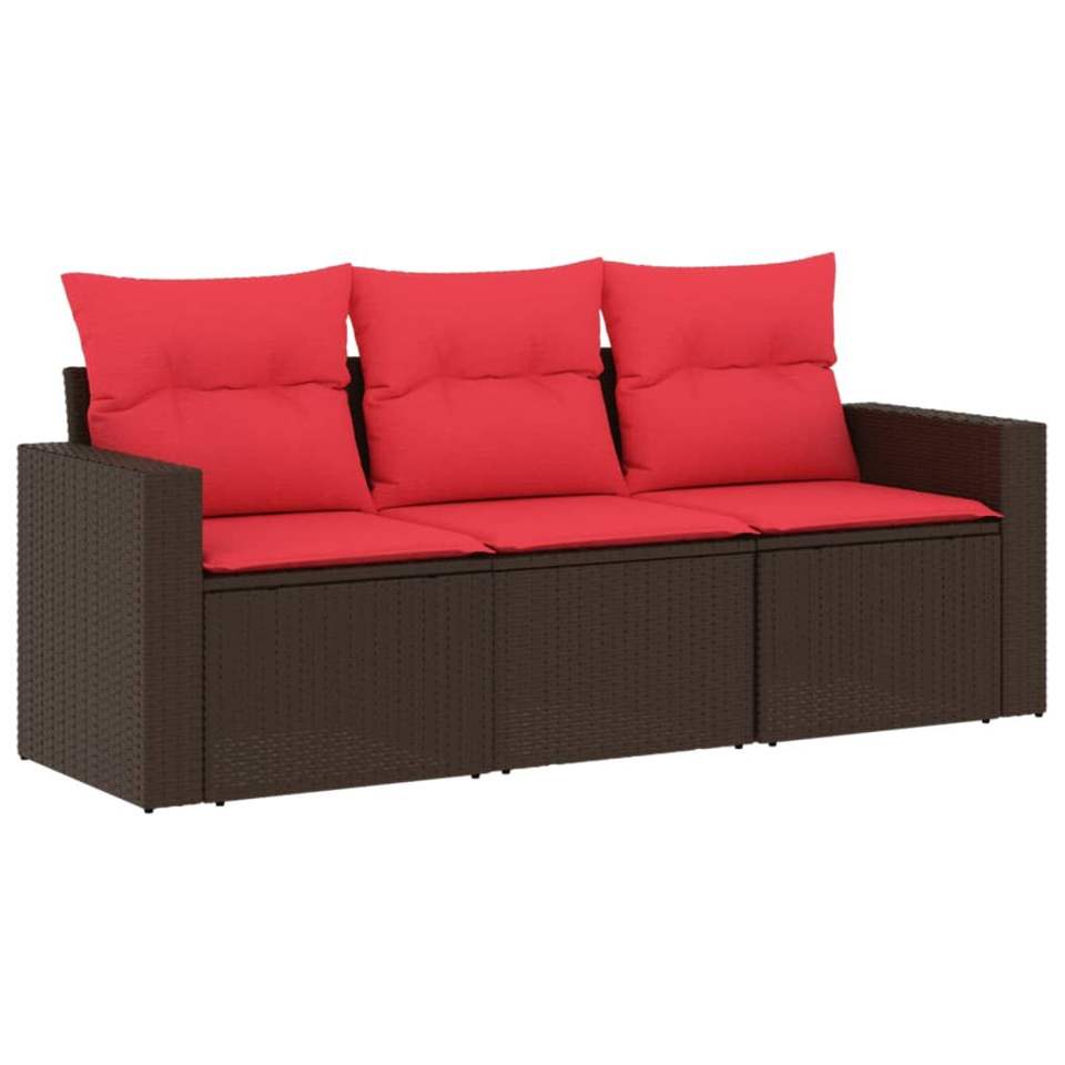 Juego de sofás de patio de ratán sintético marrón de 3 piezas con cojines, elegantes muebles de exterior