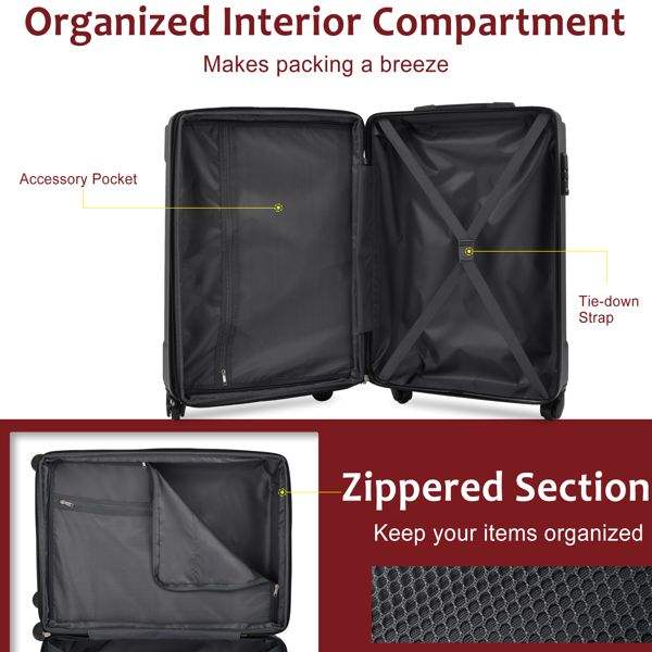 Juego de Maletas Rígidas Expandibles de 3 Piezas, ABS, con Ruedas Dobles Giratorias y Candado TSA (20/24/28 Pulgadas) para Viaje