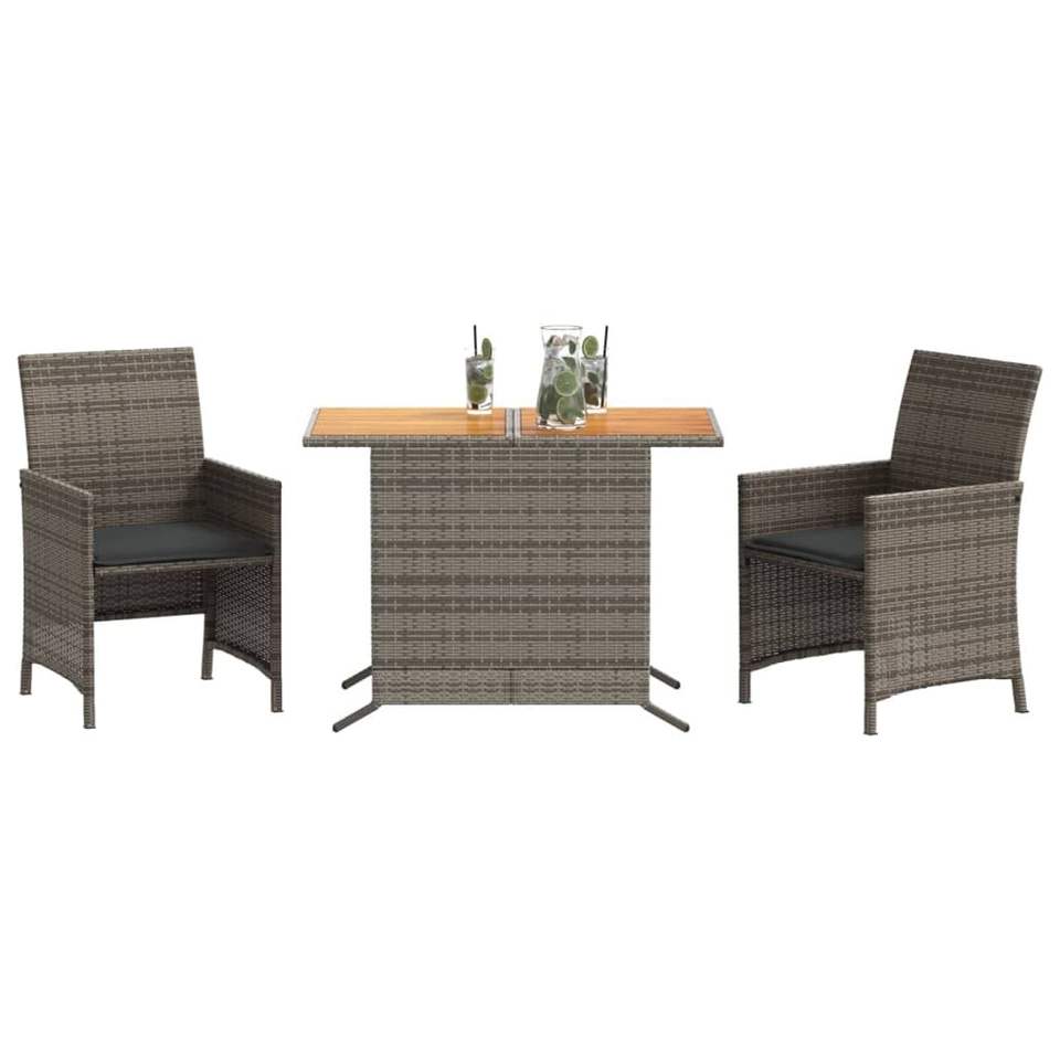 Juego de bistró de ratán polivinílico gris de 3 piezas con cojines Juegos de jardín