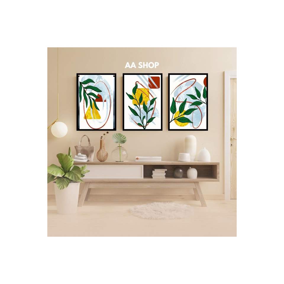 Juego de mesa MDF de 3 piezas con diseño de hoja de flor de impresión de calidad Marco resistente a la decoloración para Wall Arts 100% Satisfacción garantizada