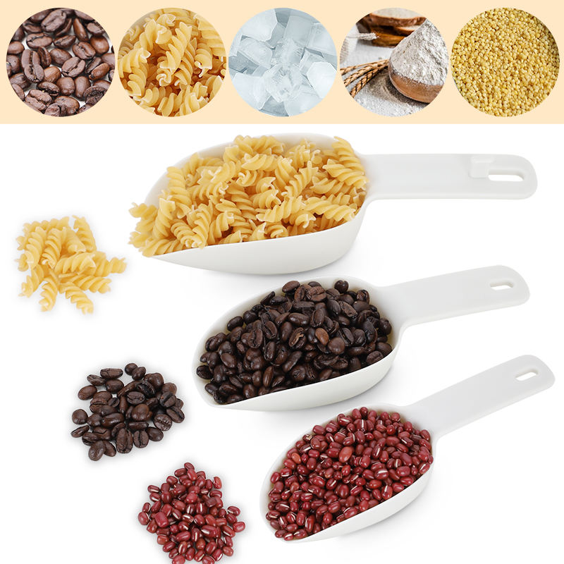 Juego de cucharas de barra de plástico multiusos de 3 piezas, pala para servir alimentos secos para frijoles, dulces, cucharas de hielo para cocina, uso doméstico