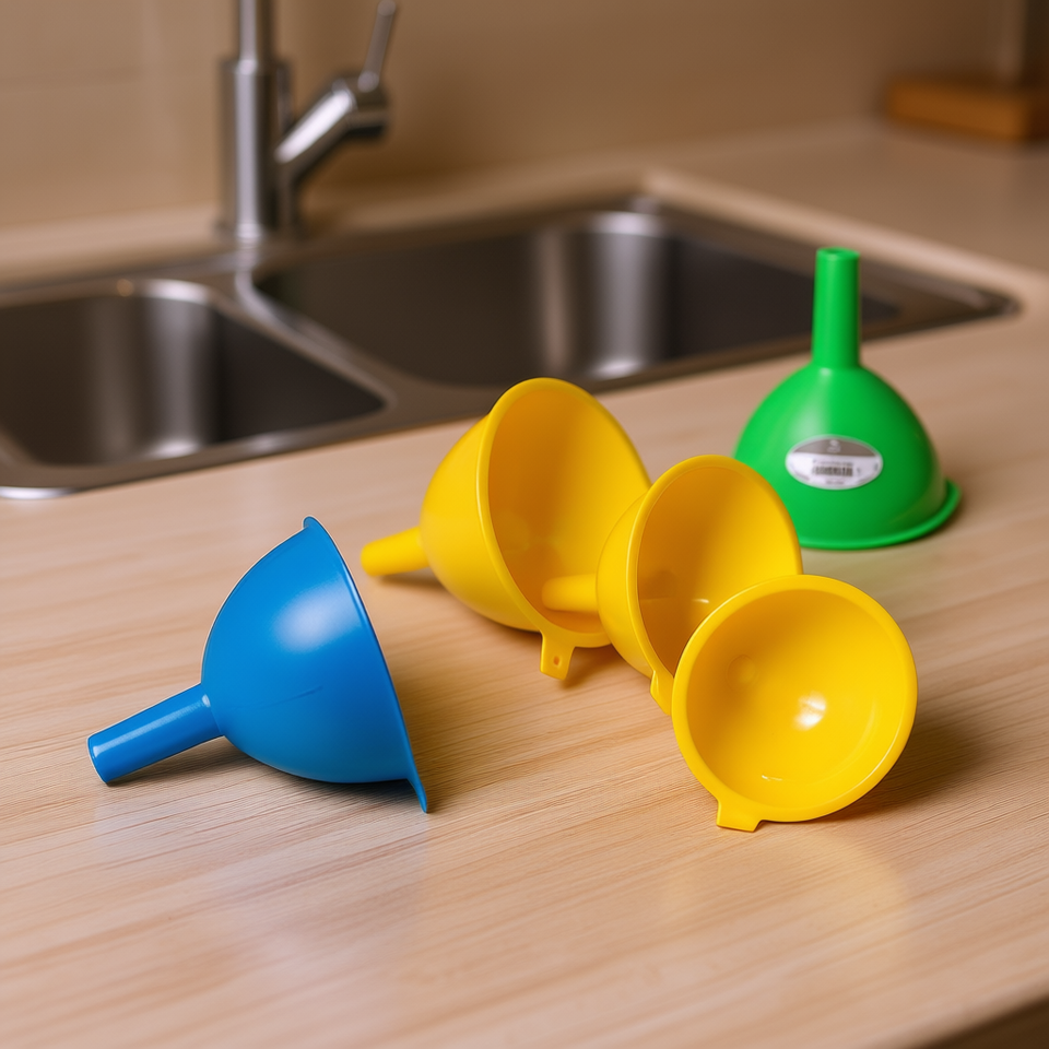 Juego de embudos de plástico On Teck Sa De Cv, herramienta para verter en la cocina, duradera, ligera, portátil, confiable, práctica y eficiente, 3 piezas