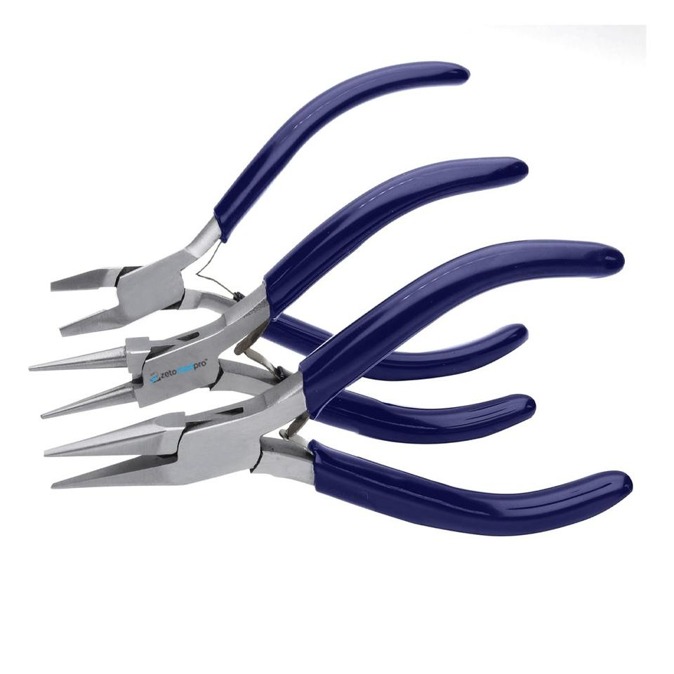 Juego de 3 Alicates Profesionales para Joyería: de Punta Plana, de Punta Redonda y de Corte Recto
