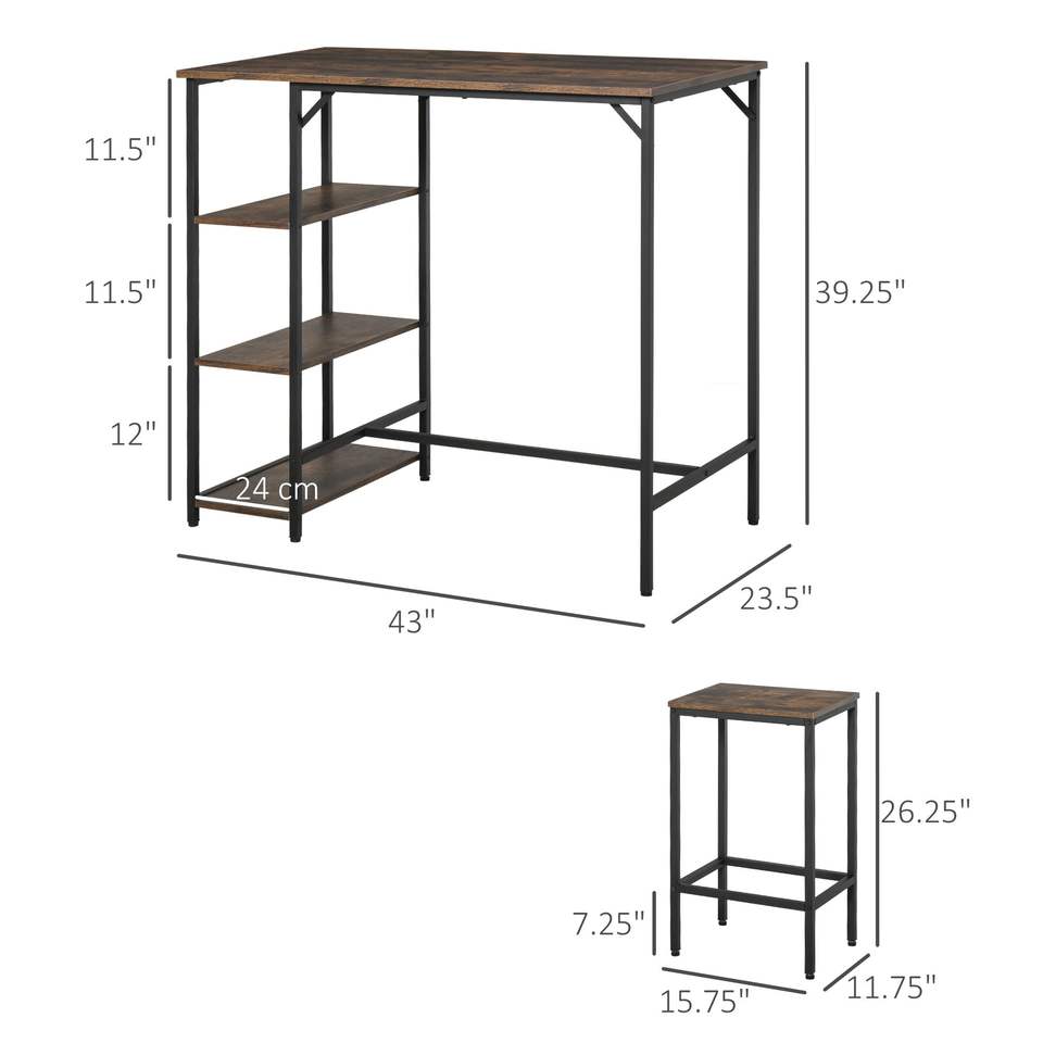 Juego de 3 Taburetes de Bar Rústicos Marrones con Estante de Almacenamiento, Juego de Comedor Negro para Cocina o Comedor
