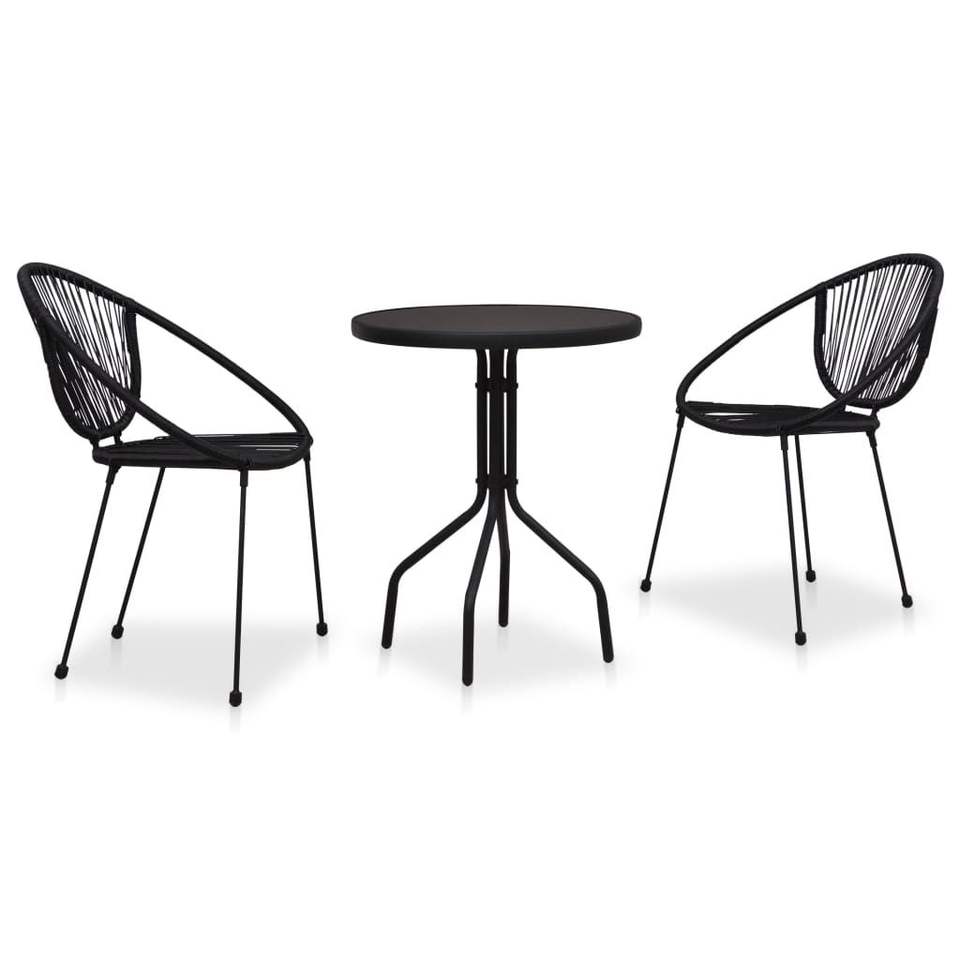 Conjunto de Bistro Apilable de 3 Piezas en Ratán Sintético PVC Negro, Acero y Vidrio para Uso en Jardín