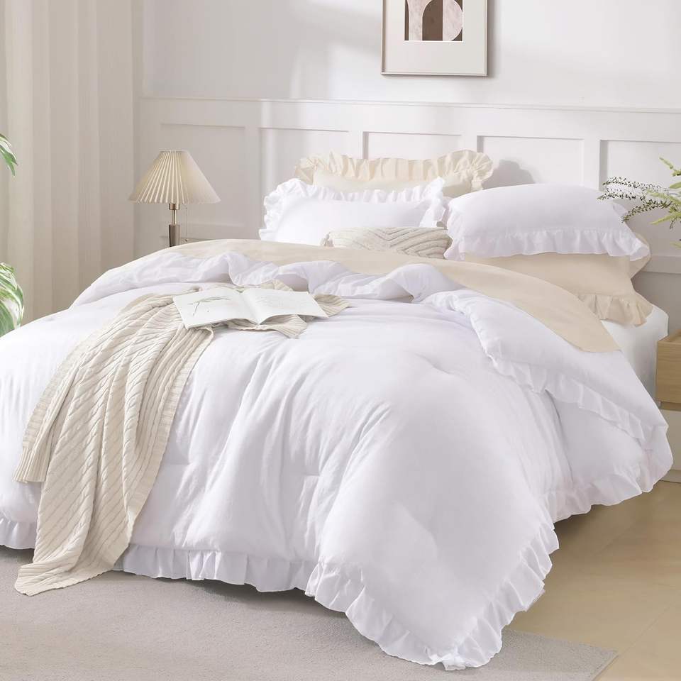 Juego de edredón de 3 piezas con volantes estilo shabby chic, suave, ligero y esponjoso, para decoración de habitación, para niñas, mujeres, adolescentes e hijas