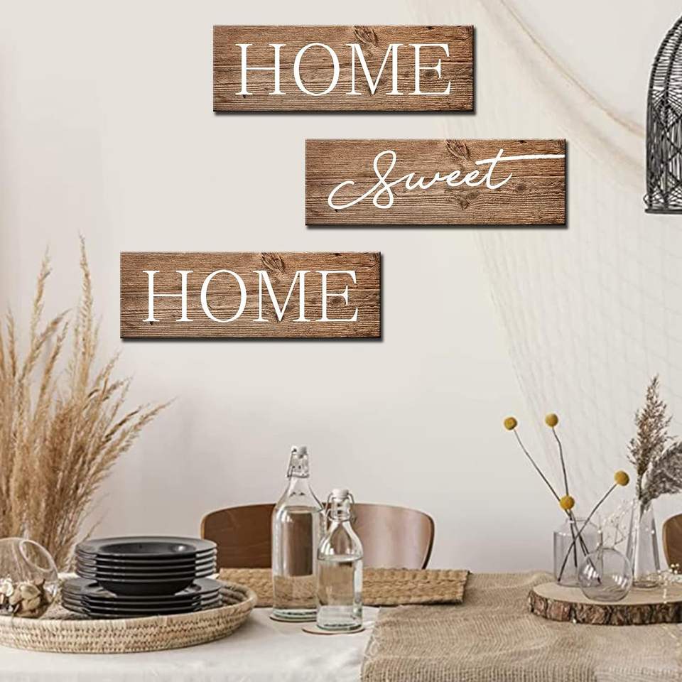 3 piezas de madera rústica decoración de pared signo dulce hogar signos colgante de madera arte de pared moderna granja Placa de pared para casa cocina