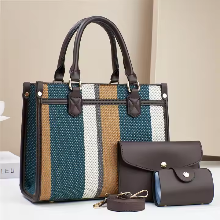 Juego de 3 Bolsos de Lona para Mujer, Bolsos de Hombro con Asa Superior de PU y Cierre de Cremallera para el Trabajo, Bolsos Modernos
