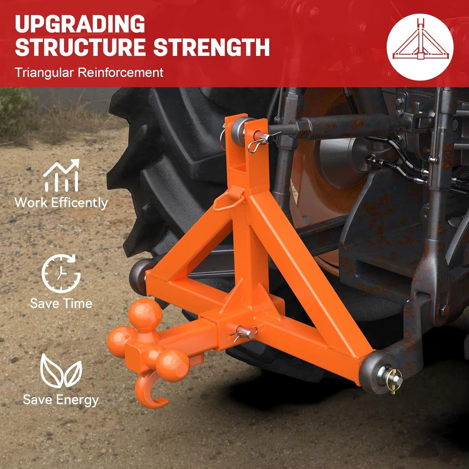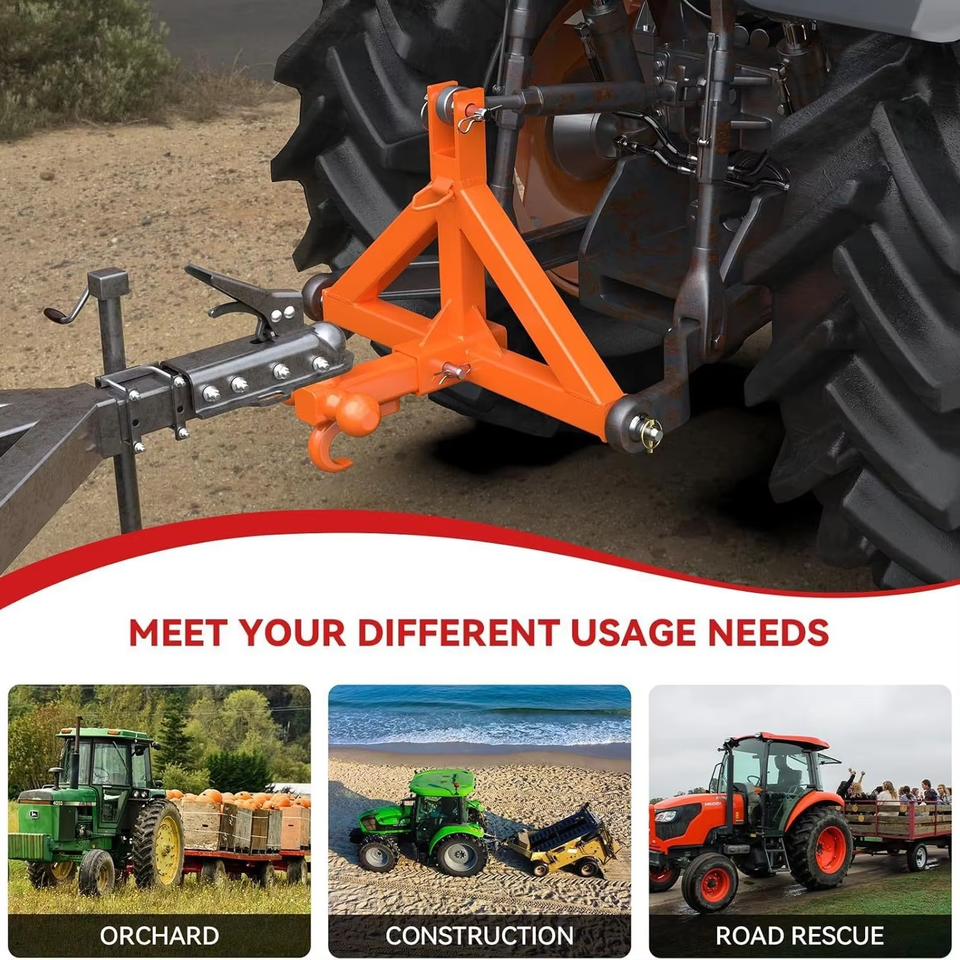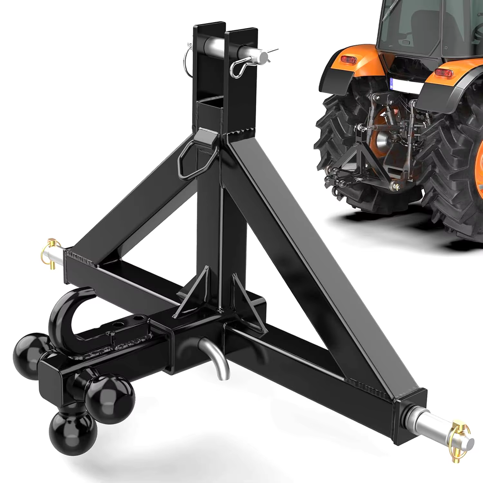 Receptor de Enganche para Remolque de 3 Puntos y 2 Pulgadas con Bola de Remolque y Gancho, Accesorio de Barra de Tracción para Tractor de Alta Resistencia