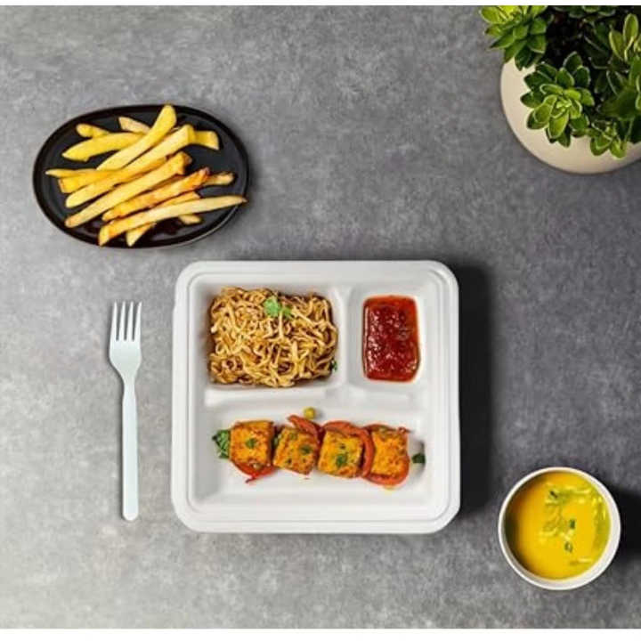 Platos Cuadrados de 3 Compartimentos para Comidas