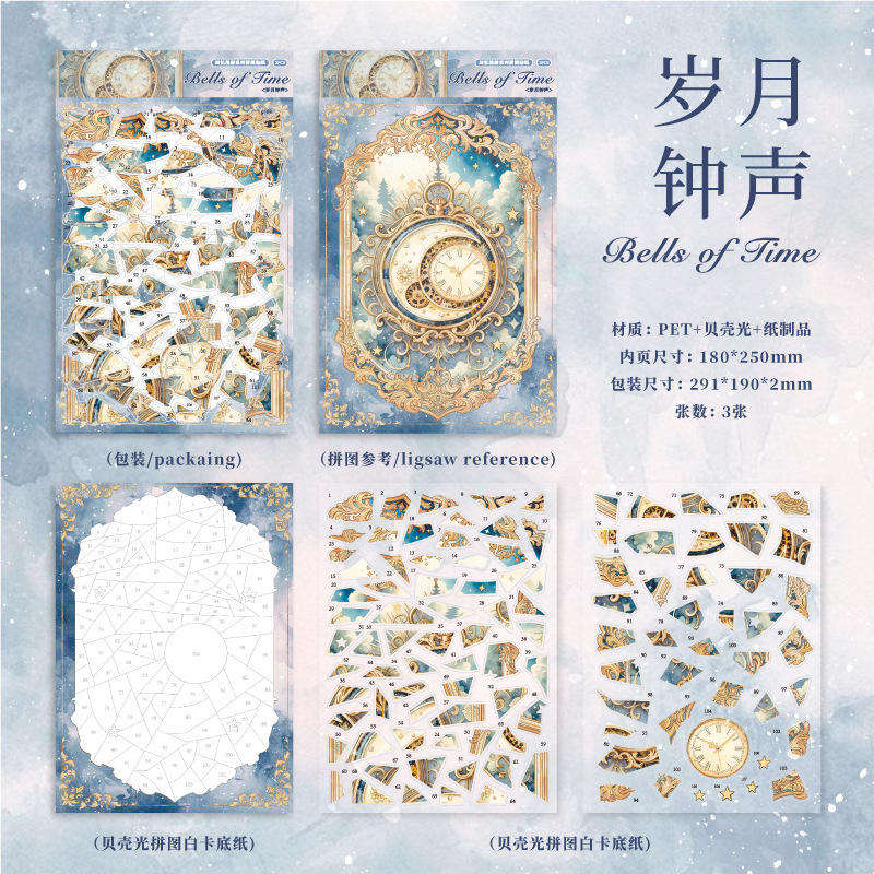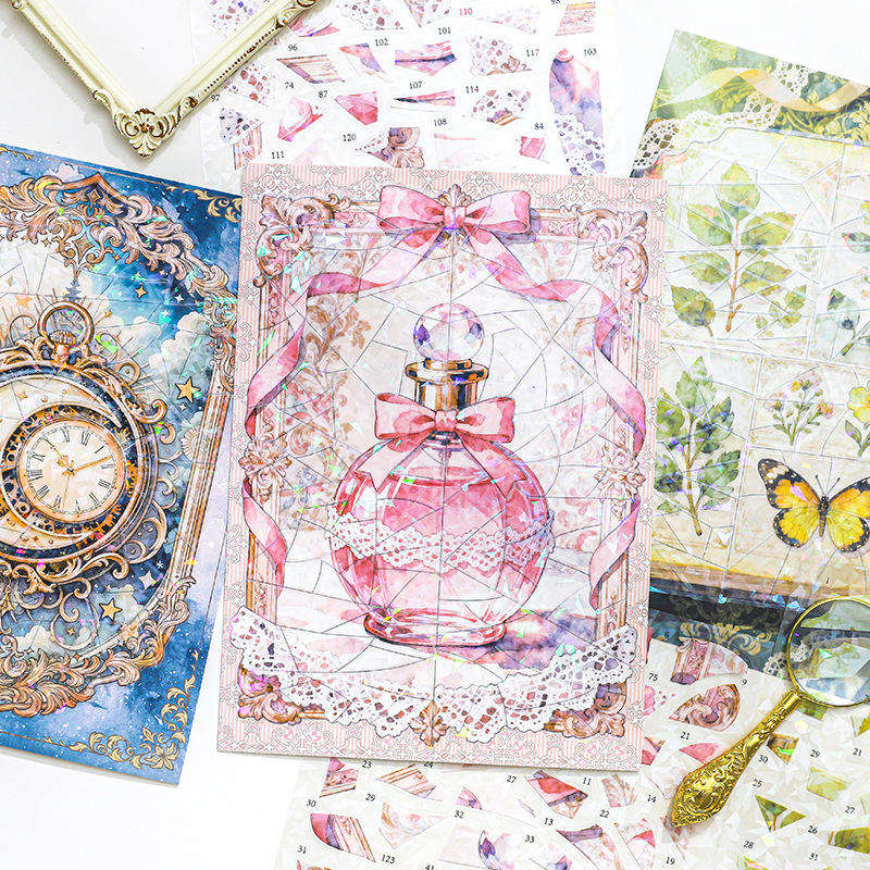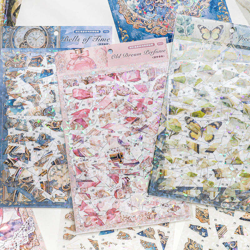 Paquete de 3 Hojas de Pegatinas de la Serie Memory Wander, Decoración Navideña, Retro Clásico, con Detalles Brillantes, Autoadhesivas, PET+Papel