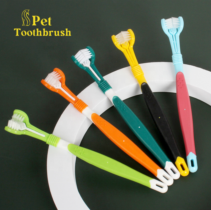 Function:3- Sided 360° Clean oral care dog toothbrush