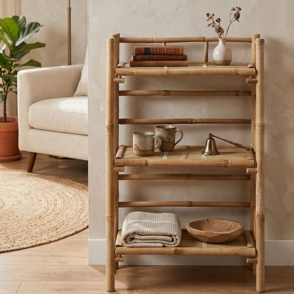 bamboo shelf, bamboo shelf rack, bamboo storage shelf