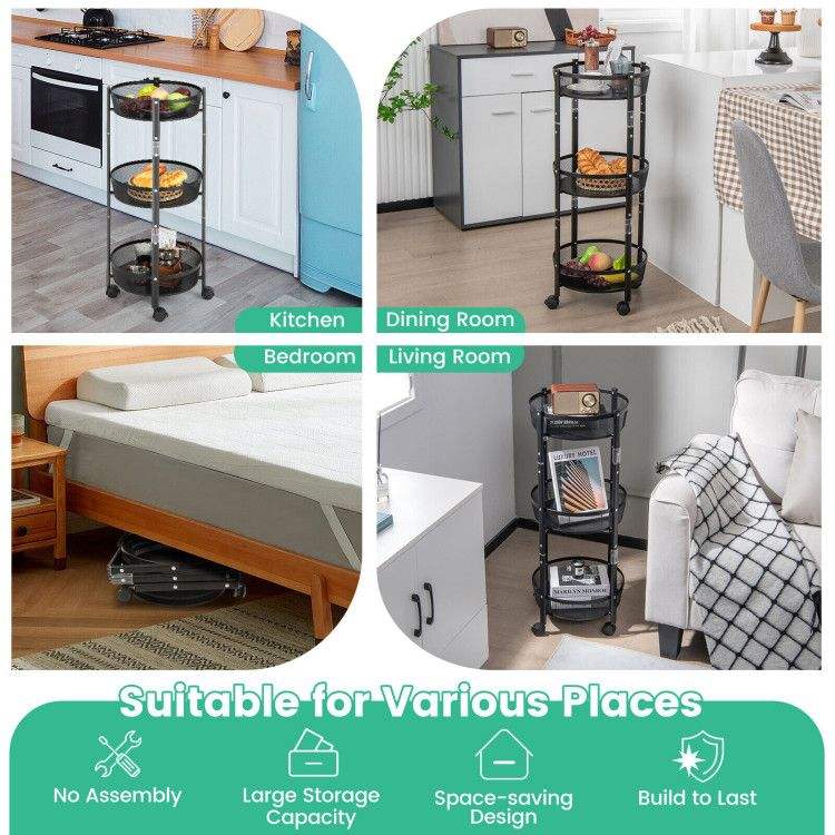 Estante de Almacenamiento Metálico Plegable de 3 Niveles con Rotación de 1 Segundo, Unidad de Estantería Conveniente y que Ahorra Espacio