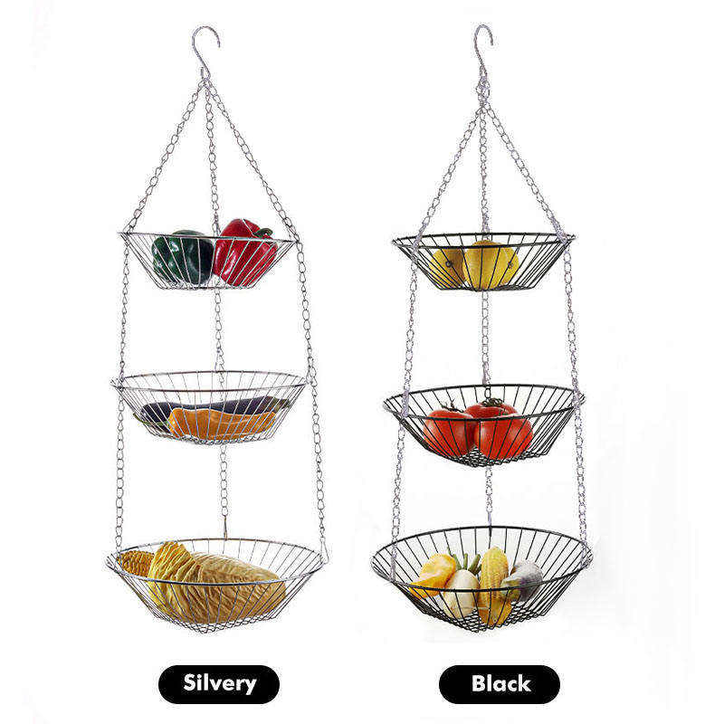 Cesta de Almacenamiento de Frutas y Verduras de Acero Inoxidable de 3 Niveles, Cestas Colgantes Extraíbles, Reutilizables, Ecológicas para Cocina