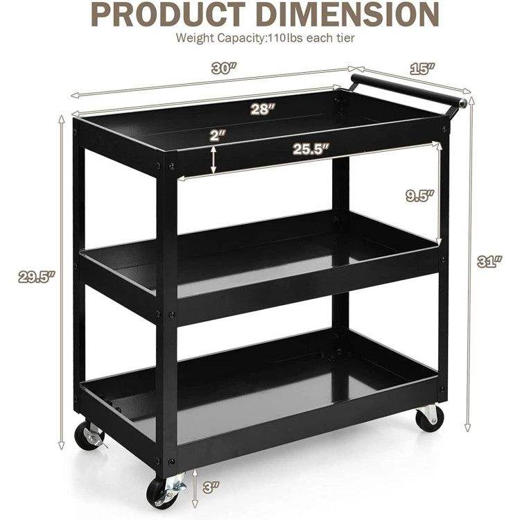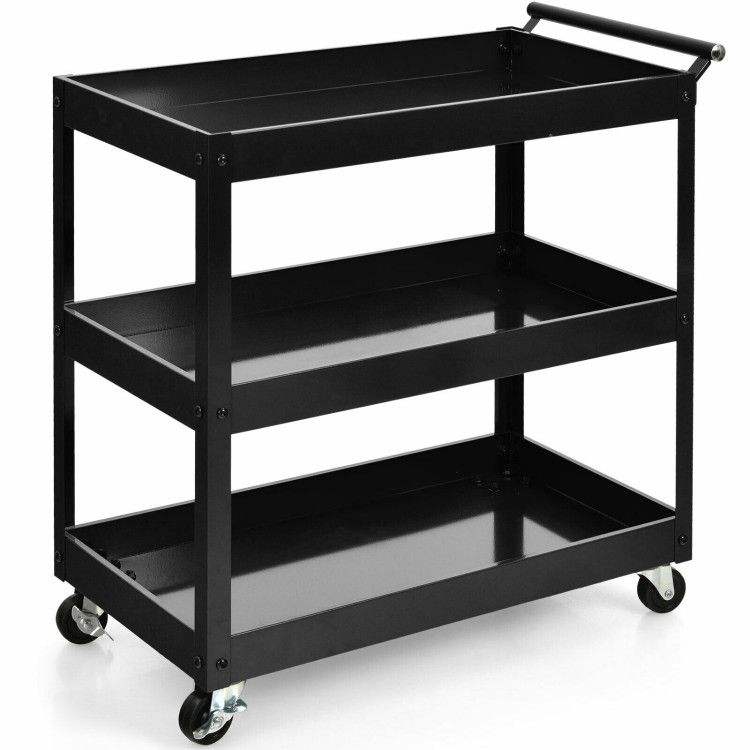 Carrito Utilitario de 3 Niveles con Estructura de Acero y Cuatro Ruedas para Suministros de Hotel y Restaurante