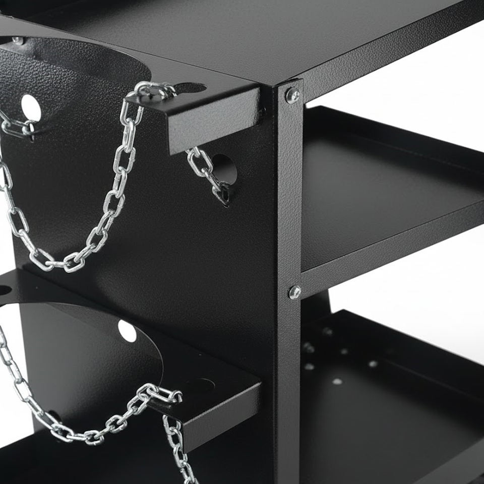 Características:Carro resistente con múltiples estantes