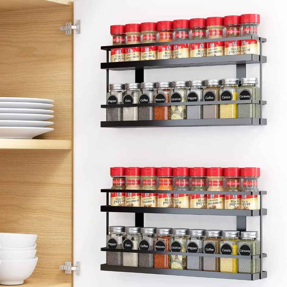 Organizador de especias de madera de 3 niveles, estante de almacenamiento vertical para encimera de cocina, soporte para botellas de condimentos, marco de metal, para tocador de baño