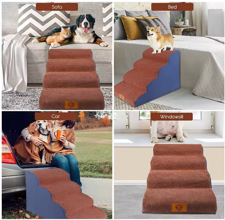 Rampa y escaleras para perros de 3 niveles para camas o sofás, escalones antideslizantes y resistentes para mascotas para que los perros pequeños se suban a la cama alta