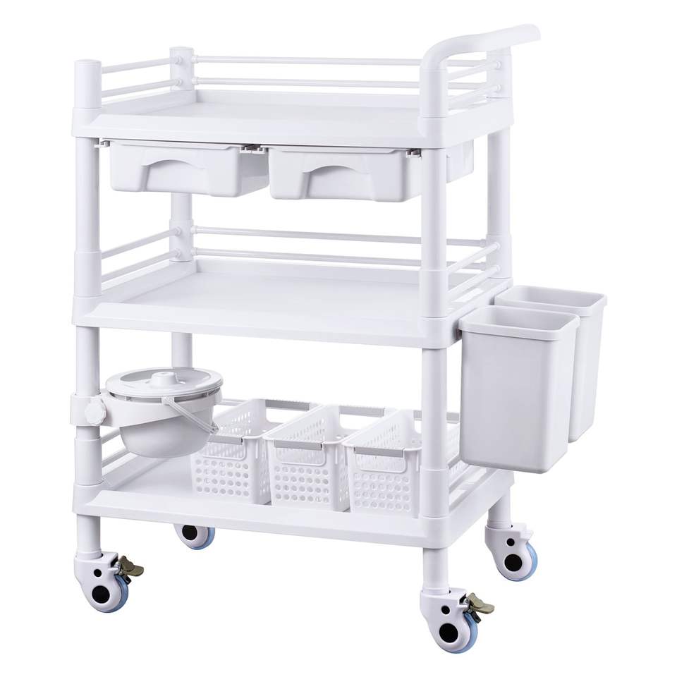 Carrito de Almacenamiento de Laboratorio de 3 Niveles con 4 Ruedas Silenciosas, Carrito Rodante Móvil con Material PP, 3 Bandejas, 4 Ruedas Silenciosas