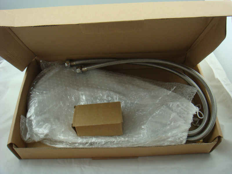 The pipes have been fixed with the tap. The tap is covered with a soft cloth bag, then it's covered with a bubble bag for further protection. The whole item is packed inside a strong corruguated box.