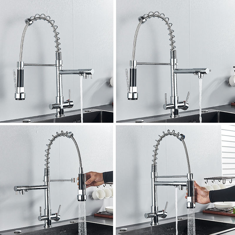 Grifo de Cocina para Agua Potable, de Latón Sólido, Certificado CUPC, de 3 Vías, con Rotación de 360 Grados, Interruptor de Doble Manija, para Hoteles, Venta al Por Mayor