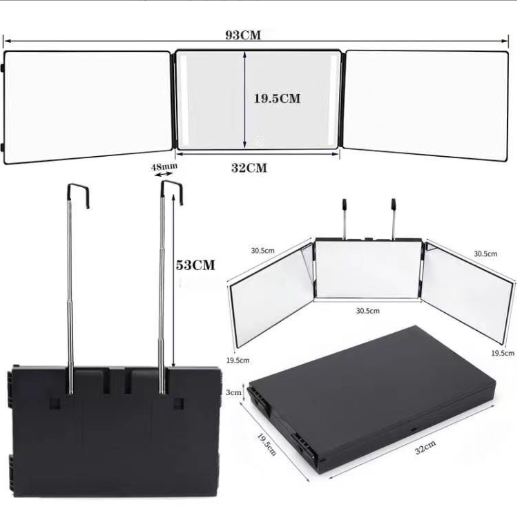 Tipo de espejo:Espejo de peluquería y barbería con triple pliegue, 3 vías y vista de 360 grados para auto-corte de cabello
