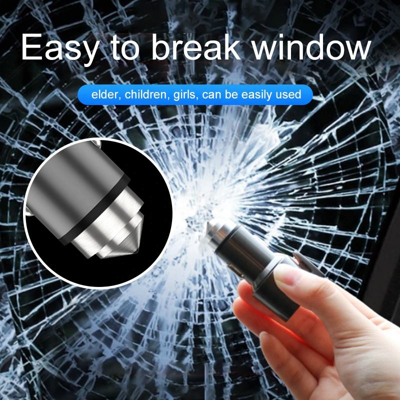 3 en 1 65W PD Tipo C Puerto Teléfono móvil Adaptador de cargador de coche de metal rápido con cortador de cinturón de seguridad