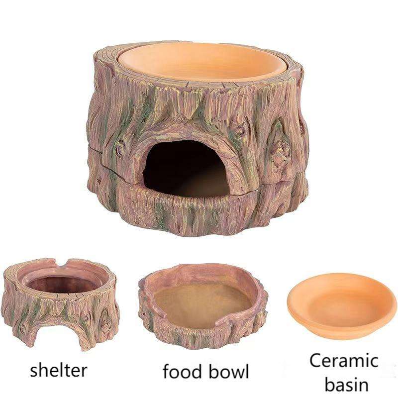 3-en-1 Elude Humidificación Cueva Cuenca de alimentos Caja de Cuenca de agua Creación de paisaje Emulate Tree Cave