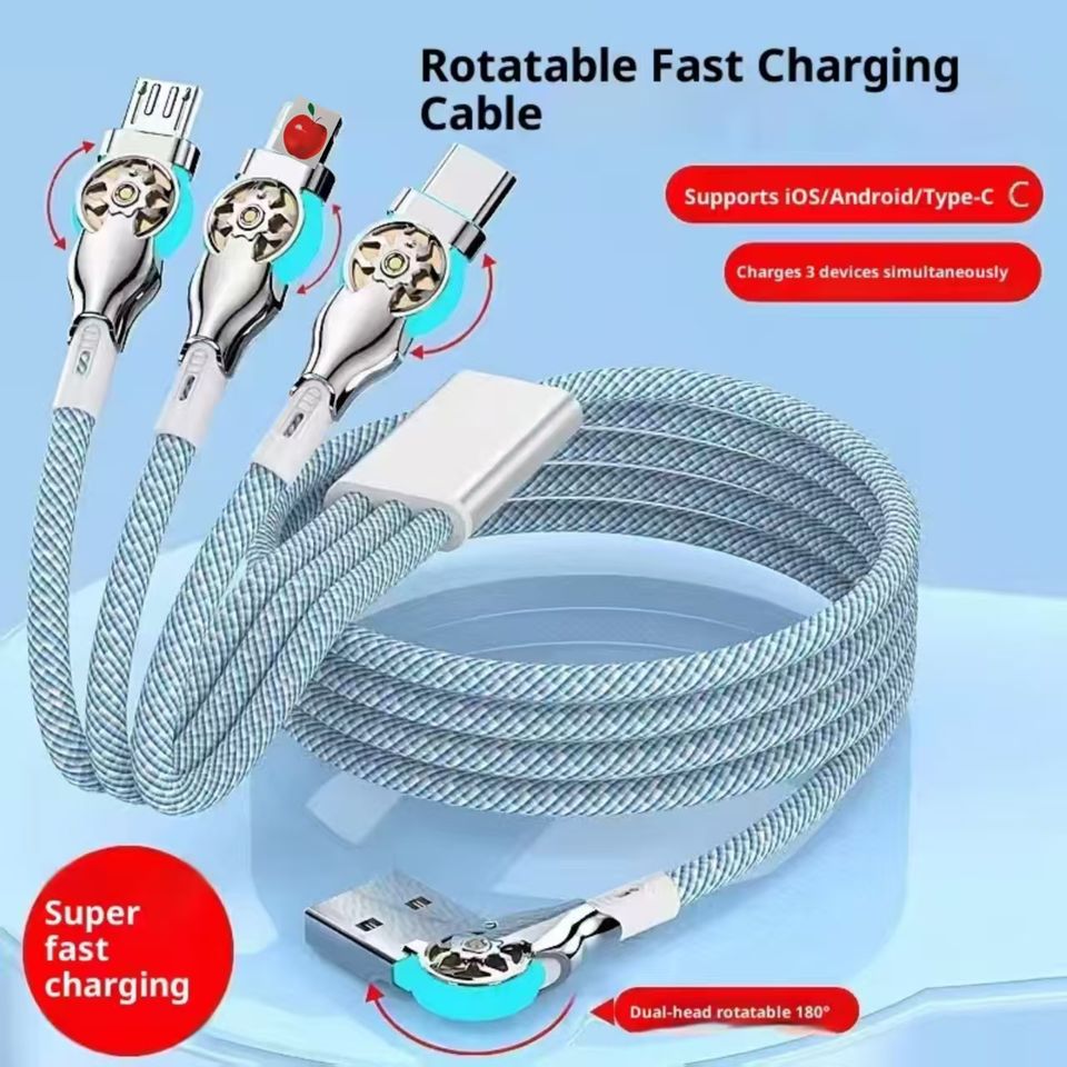 Cable de Datos de Carga Rápida 3 en 1, Cable Universal Giratorio de Doble Cabezal con Diseño Mecánico, Compatible con Apple, Huawei y Teléfonos Android