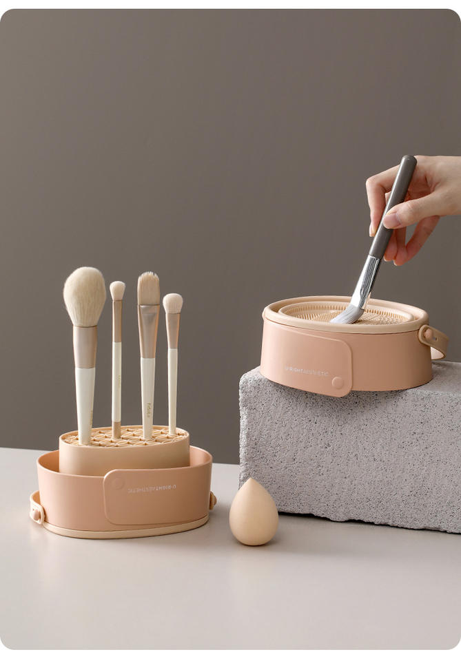 Pincel de maquillaje 3 en 1, limpieza, secado, almacenamiento, malla elástica alta, plegable, diseño desmontable, Partición de limpieza