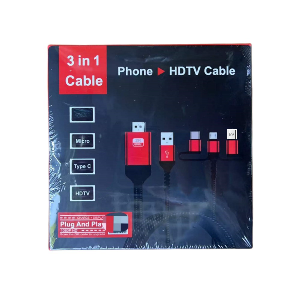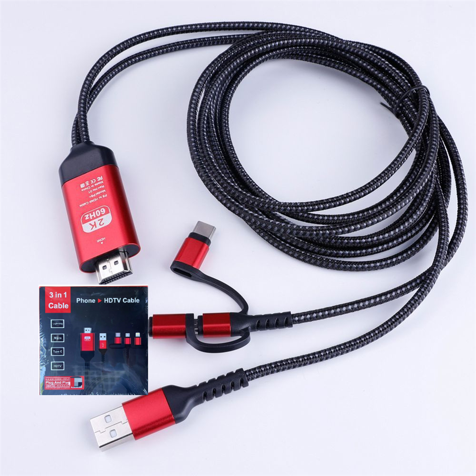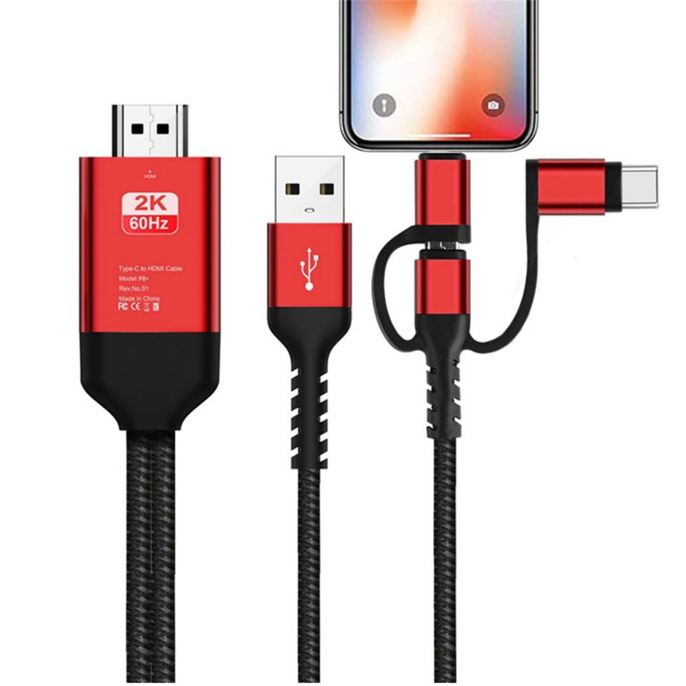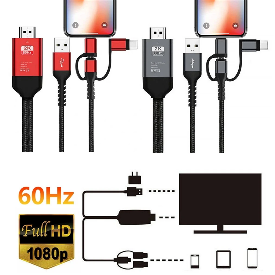 Adaptador de Cable 3 en 1 Micro USB Tipo C IOS de 8 Pines a HDMI, Duplicación de Pantalla de Teléfono a TV, Proyector, Monitor HDTV para iPhone SAMSU