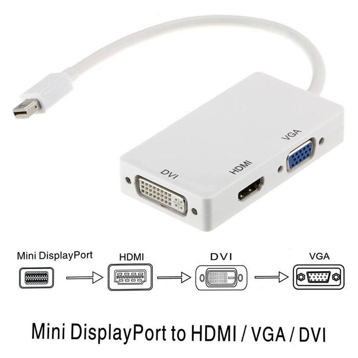 3 en 1 Mini DP puerto de pantalla HD MI VGA DVI Adaptador convertidor soporte 1080P para Apple MacBook Pro aire Thinkpad