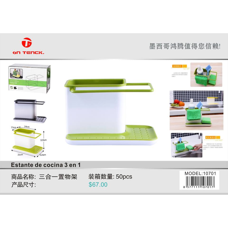 Estante de Almacenamiento 3 en 1 para Cocina Tencik, Organizador de Plástico Resistente de 21 cm x 13.5 cm x 14 cm para Uso en la Cocina