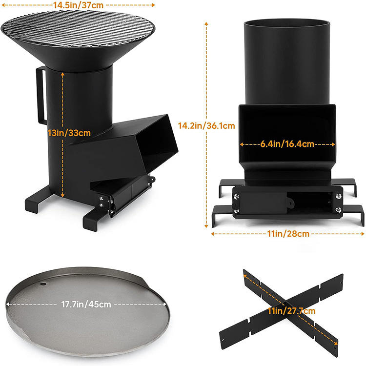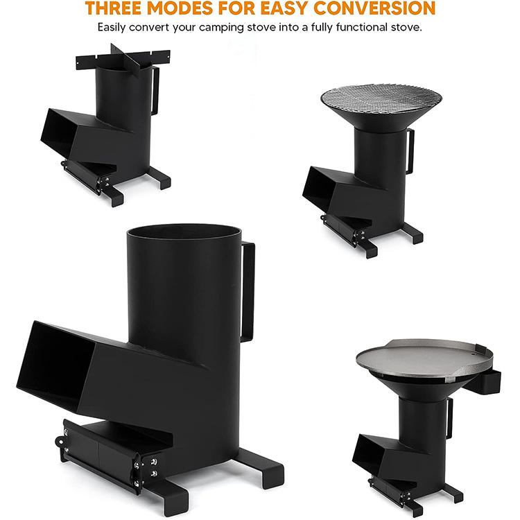 Estufa ardiente de camping al aire libre 3 en 1 estufa de cohete de acero de leñaNombre del producto