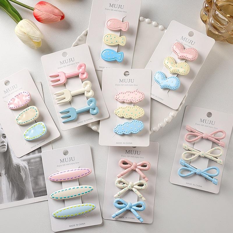 Juego de 3 piezas de pinzas para el pelo de cristal con diseño de lazo, para mujer, con lunares, pinzas de pico de pato para la frente, accesorios para el pelo, flequillo lateral